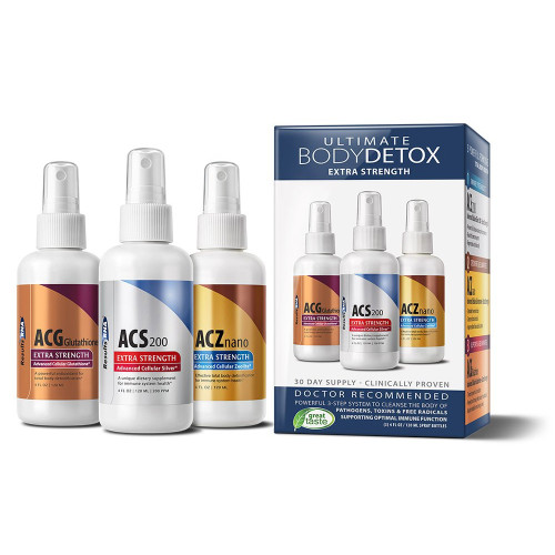 The only detoxification system of its kind proven to cleanse the body of many harmful pathogens and toxic heavy metals without side effects. System includes ACS 200 Extra Strength, ACZ Nano Extra Strength, ACG Glutathione Extra Strength.