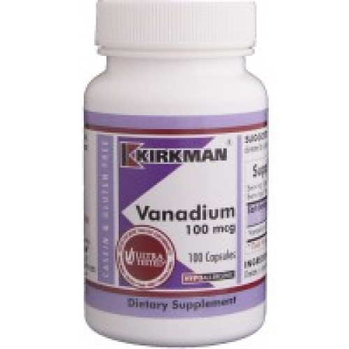 Supplement FactsServing Size: 1 CapsuleServing Per Container: 100Each Serving Contains Amount Per Serving %Daily Value*Vanadium Chelate 100 mcg **Daily Value Not Established.Other IngredientsPlant cellulose, vanadium chelate, l-leucine, plant cellulose capsule.Free of: Sugar, starch, soy, wheat, casein, gluten, milk, preservatives, yeast, gelatin, flavorings or colorings.